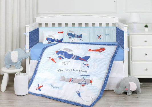 Juego Cuna Corral Estampado Avión 5 Piezas