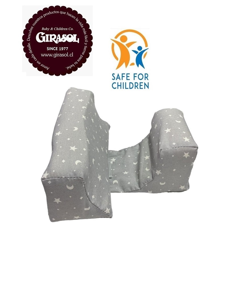 Cojines textiles diseñados para hacer descansar anatómicamente a su bebé mientras duerme en posición lateral, de este modo evita problemas de seguridad como reflujo intermitente y frecuente en algunos bebés
