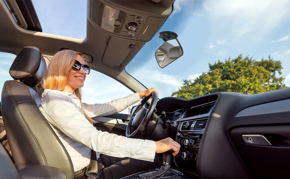 Este útil espejo te permite ver a los niños mientras viajan en sus sillas, permitiéndote saber si van comiendo un snack, dormidos, o disfrutando del paisaje.
